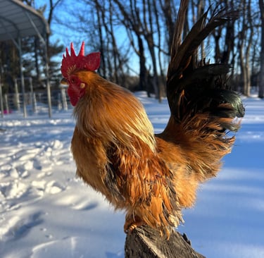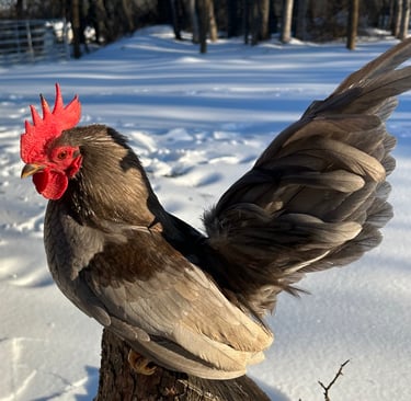 Twix is a beautiful gray rooster. He’s the largest of our breeding males, and he’s very proud of himself, even though he ‘s not the boss.