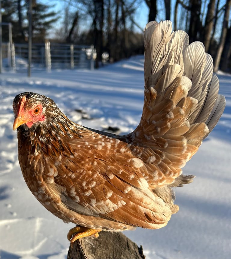 Note: My chickens aren’t showing off their posture. The only way I could get them to hold still long enough to take a photo was to put them on an uneven stump.